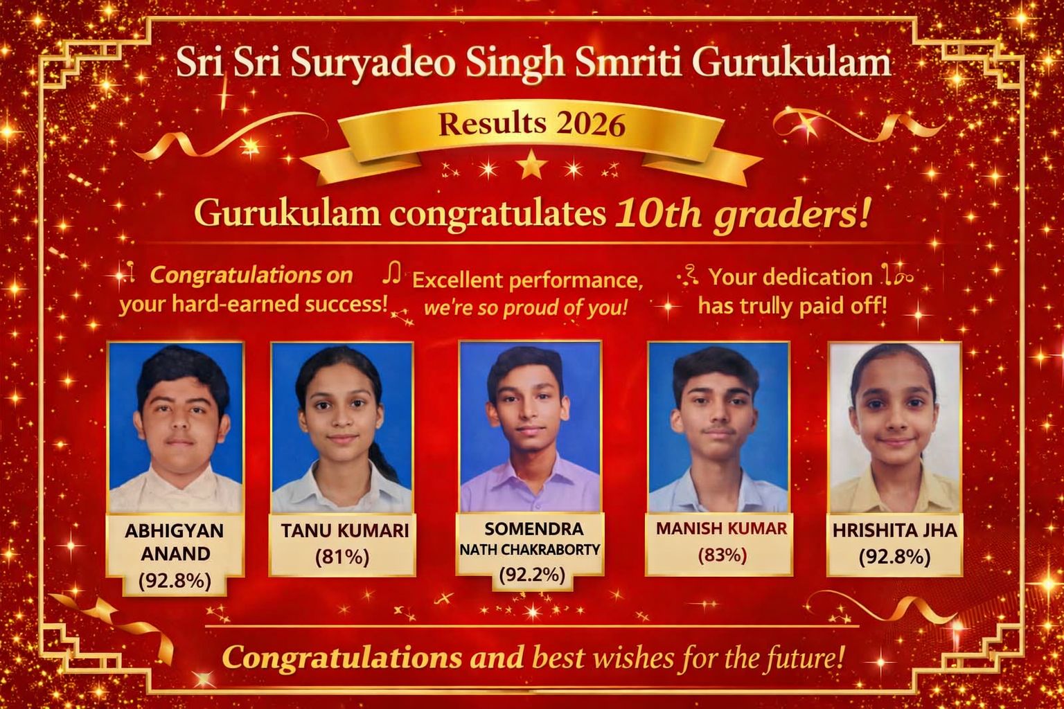 The name of our Gurukulam Sri Sri Surya Deo Singh Smriti Gurukulam is named in the sweet memory of Sri S.D. Singh , an eminent leader who struggled for the cause of poor works and made a history.